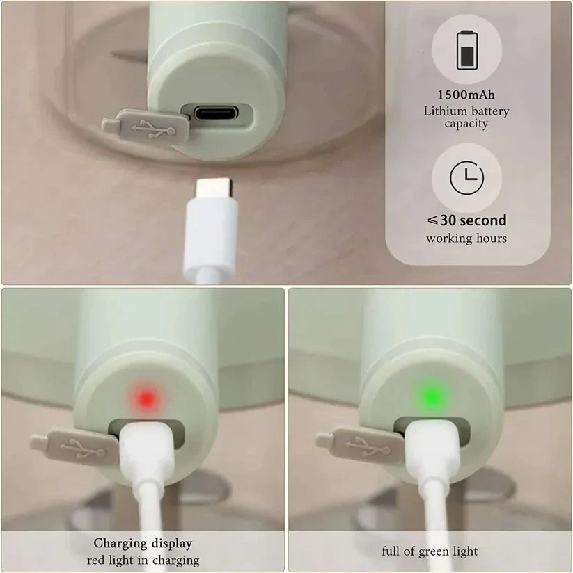 The handheld electric vegetable cutter is rinsed, the feeding hole is added with detergent to start with one key, and it can be washed with running water by stirring for 5 seconds.